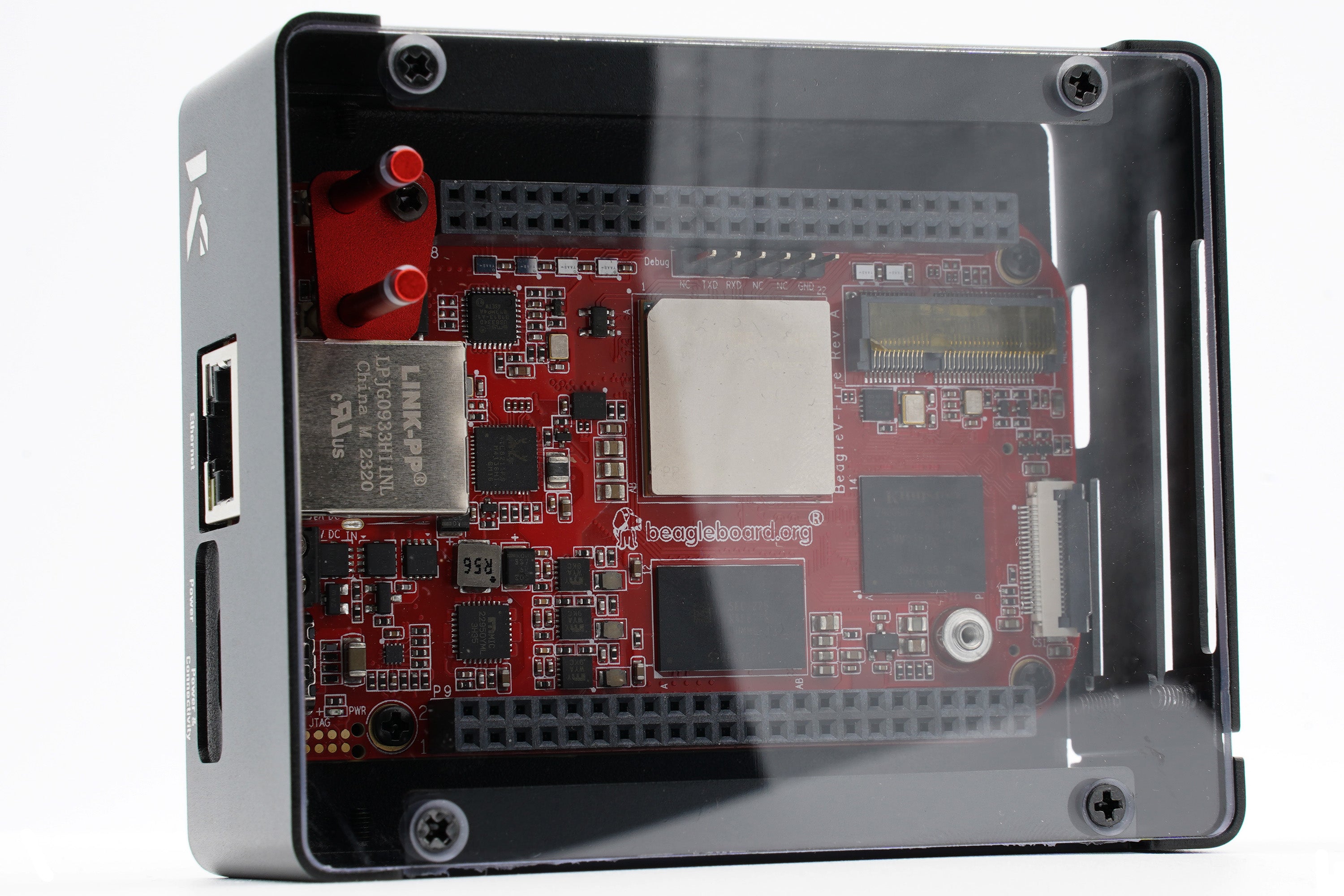 Optimize your BeagleV Fire experience with the KKSB BeagleV Fire Case. This metal case features a transparent, crack-resistant polycarbonate cover for optimal visibility and wireless signal transmission.