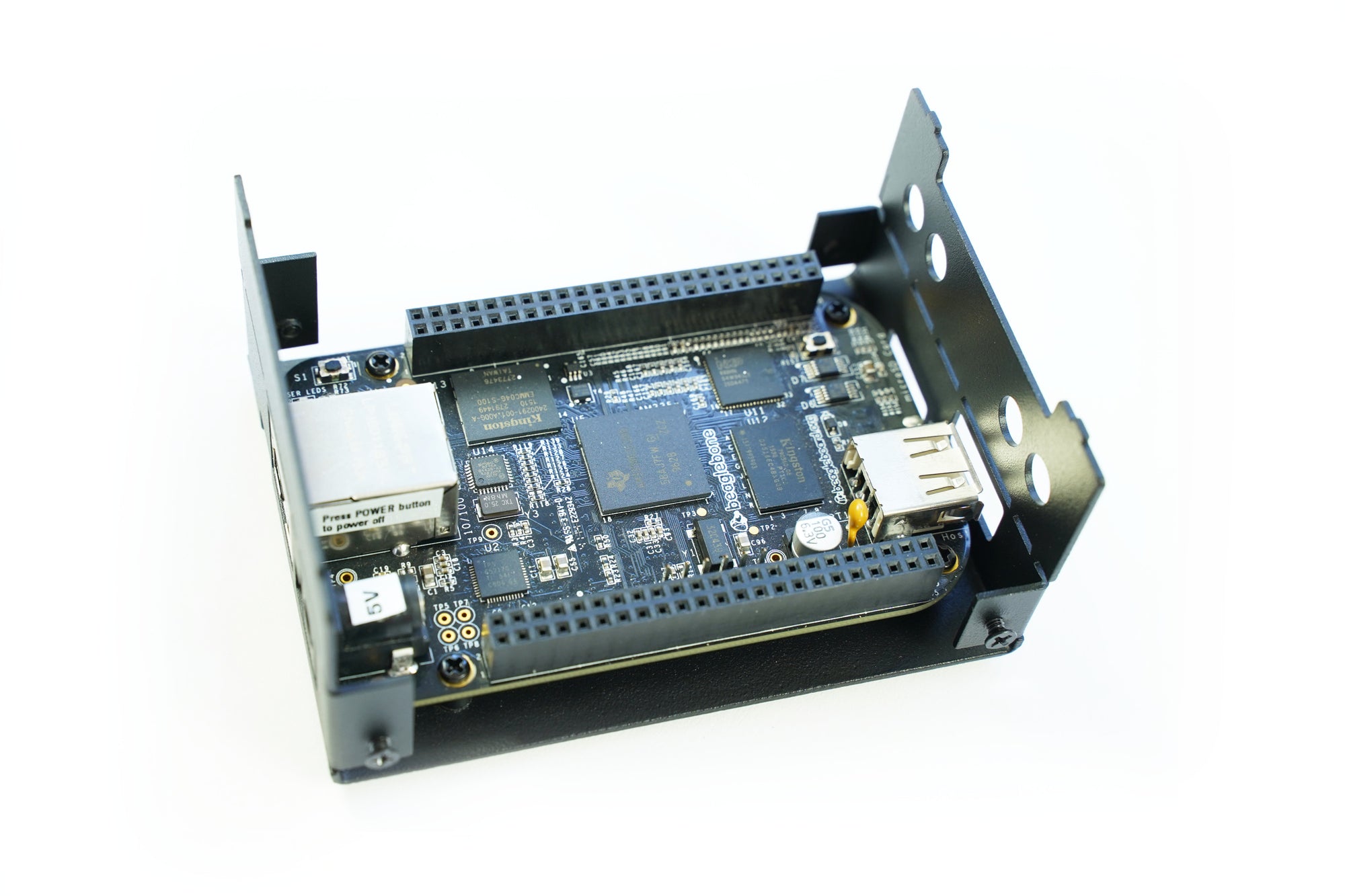 The KKSB BeagleBone steel case fits both BeagleBone Black Rev C and BeagleBone AI. It offers extra space on top for BeagleBone CAPEs and has ample ventilation holes on the cover.
